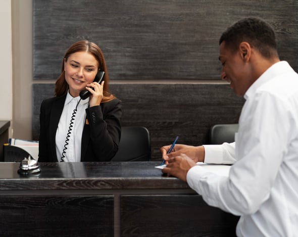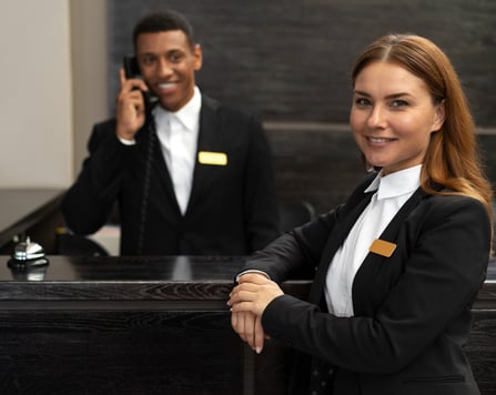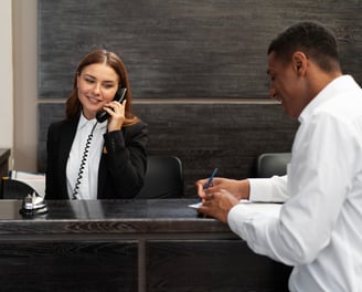 Recepcionistas oferecem uma primeira impressão positiva, fornecendo atendimento personalizado, informações úteis e assistência multitarefa. Eles criam um ambiente acolhedor e profissional para todos os que entram no local.